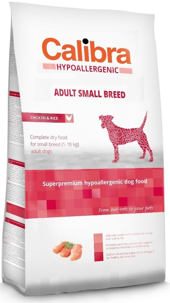 Krmivo Calibra Adult Small Breed / Chicken & Rice sú hypoalergénne granule pre dospelých psov miniatúrnych a malých plemien o váhe od 1 do 10 kg. Drobné granulky s atraktívnou chuťou sú prispôsobené pre ľahký príjem krmiva. Vysoko stráviteľné kompletné krmivo s kuracím mäsom a s nízkym obsahom obilnín vyhovuje aj citlivému zažívania. Receptúra s vyššou energetickou hodnotou a nízkou kŕmna dávka vyhovuje špecifickým potrebám malých plemien.